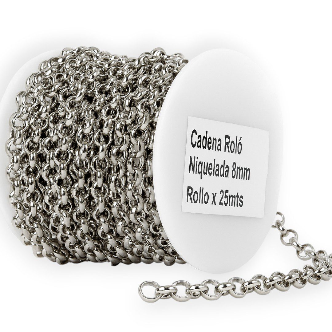 Cadena Roló de hierro, diámetro 8mm en Rollo x 25 metros Niquelado, Importado. Click Para comprar -> fraccionada